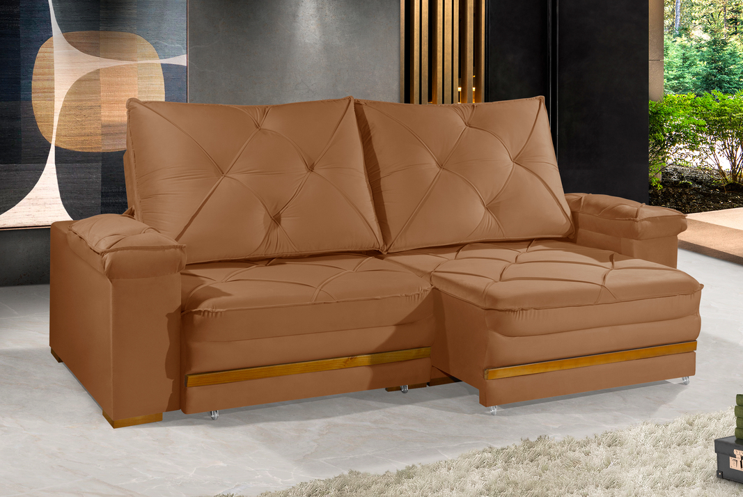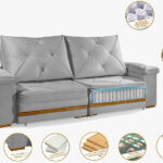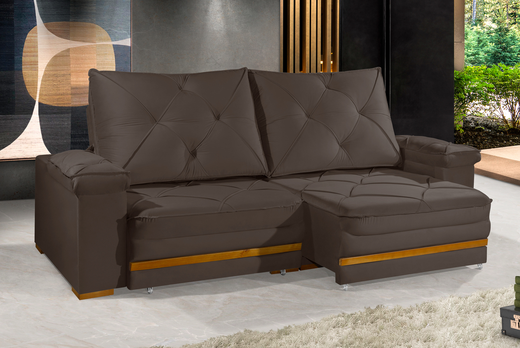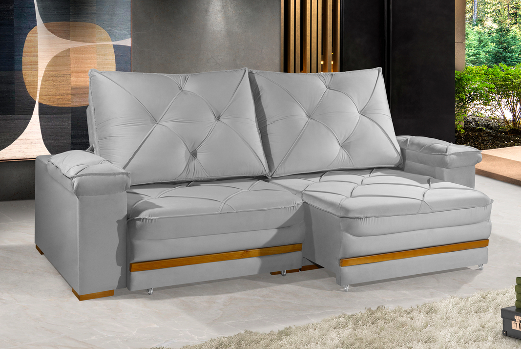 - Encosto reclinável com catraca de 4 posições, enchimento em fibra siliconada.