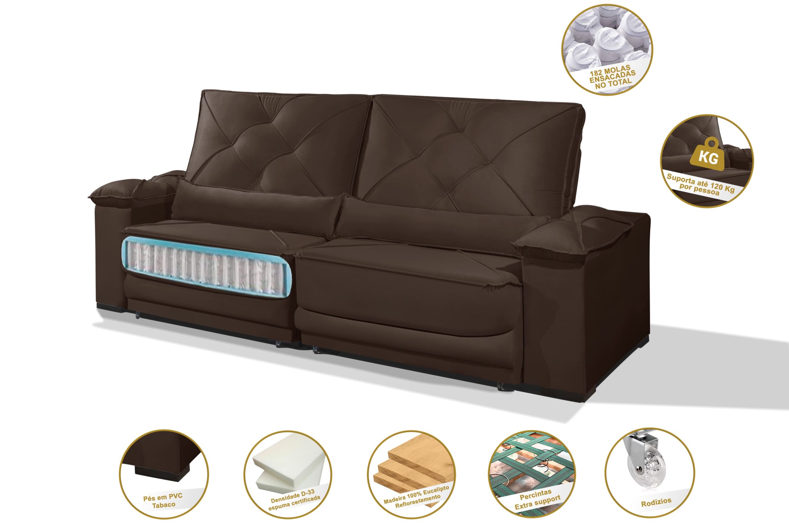 • Assento retrátil em espuma D-33, sustentação com cintas elásticas de alta resistência, molas bonel, corrediças metálicas tubulares com pillow de 20 cm.
