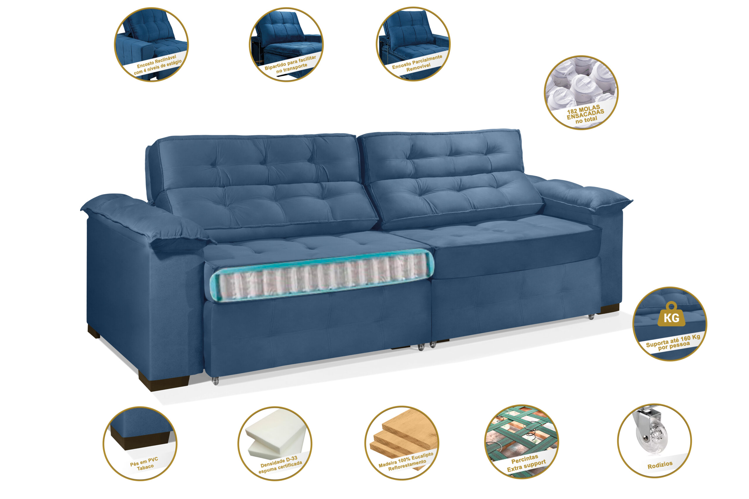 - Enchimento do Assento: Espuma D-26 a D-33, Manta Siliconada, MOLAS ENSACADAS.