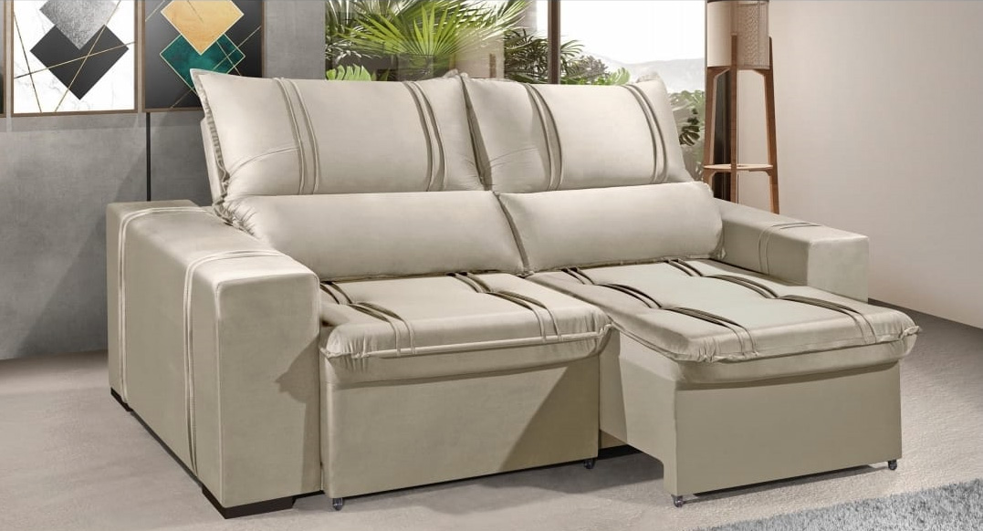 - Assento retrátil em espuma D-26 á D-33, sustentação com cintas elásticas de alta resistência, MOLAS ENSACADAS, corrediças metálicas tubulares com PILLOW TOP de 10cm.