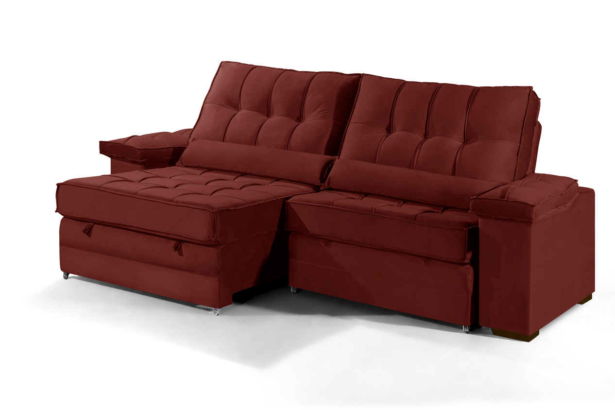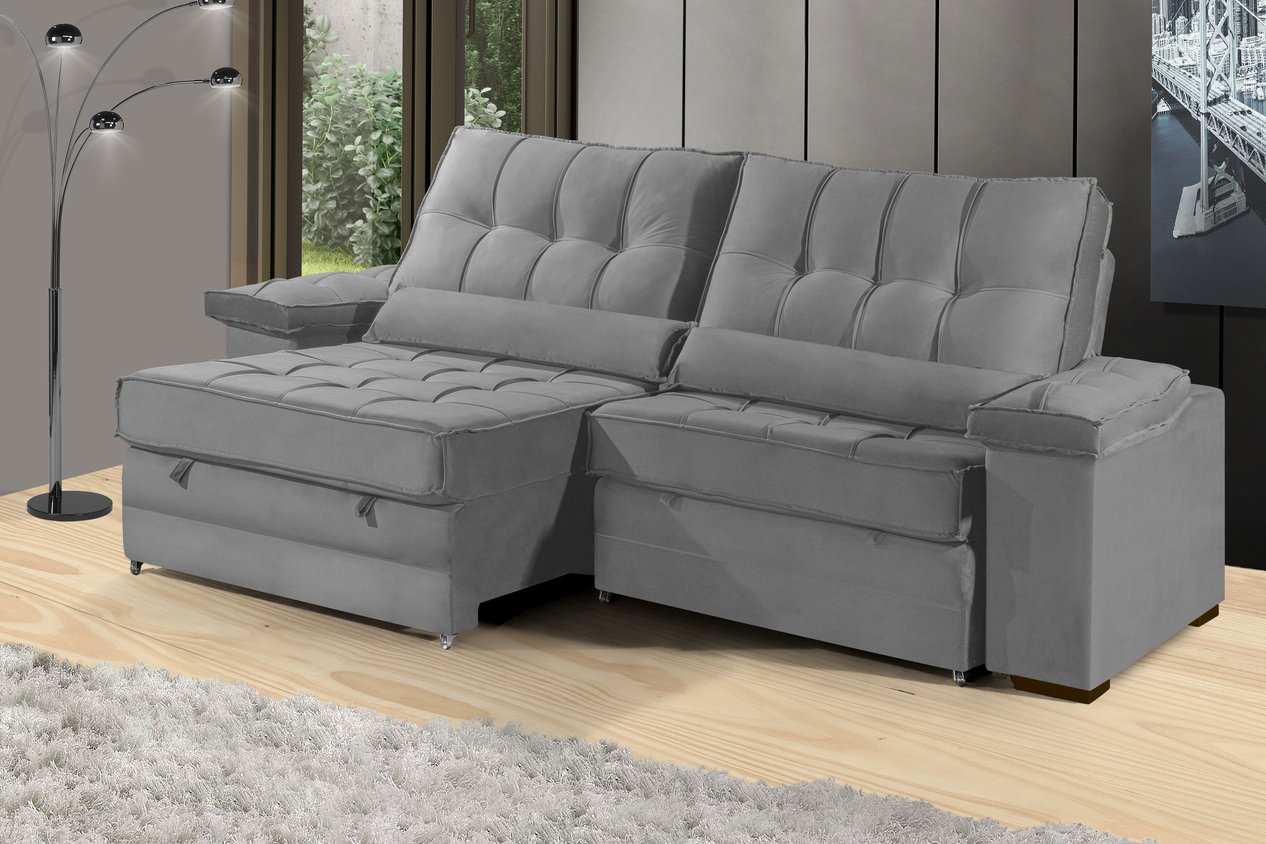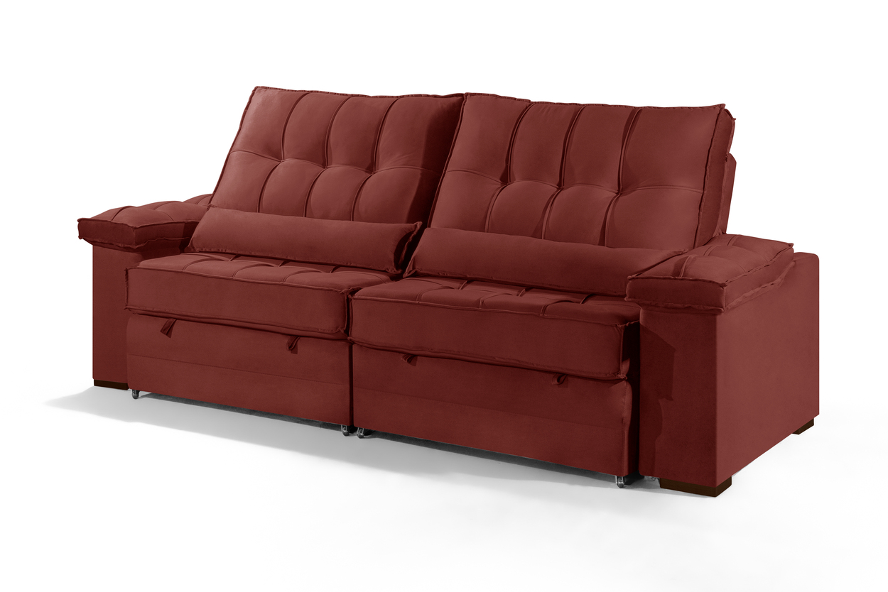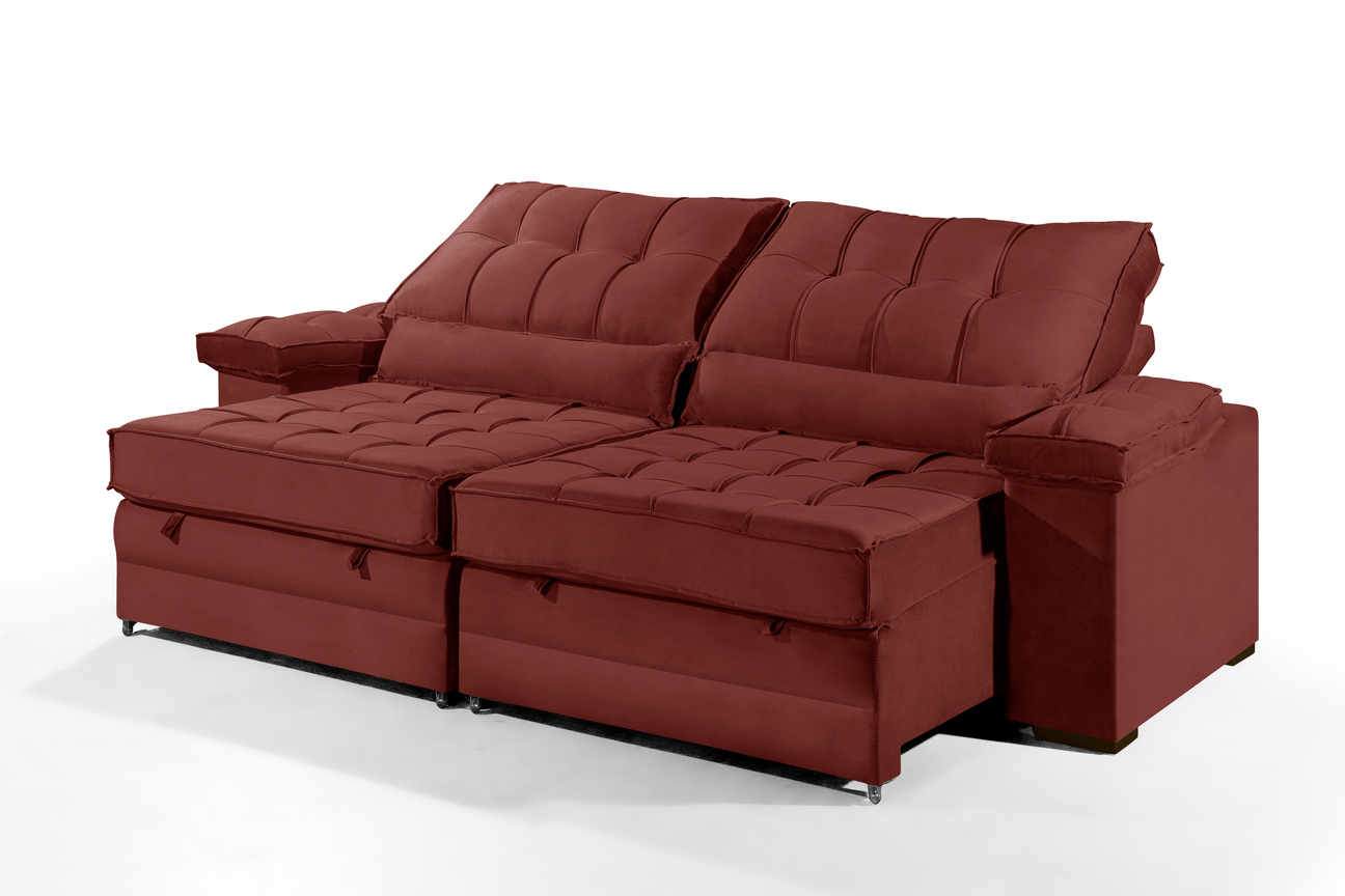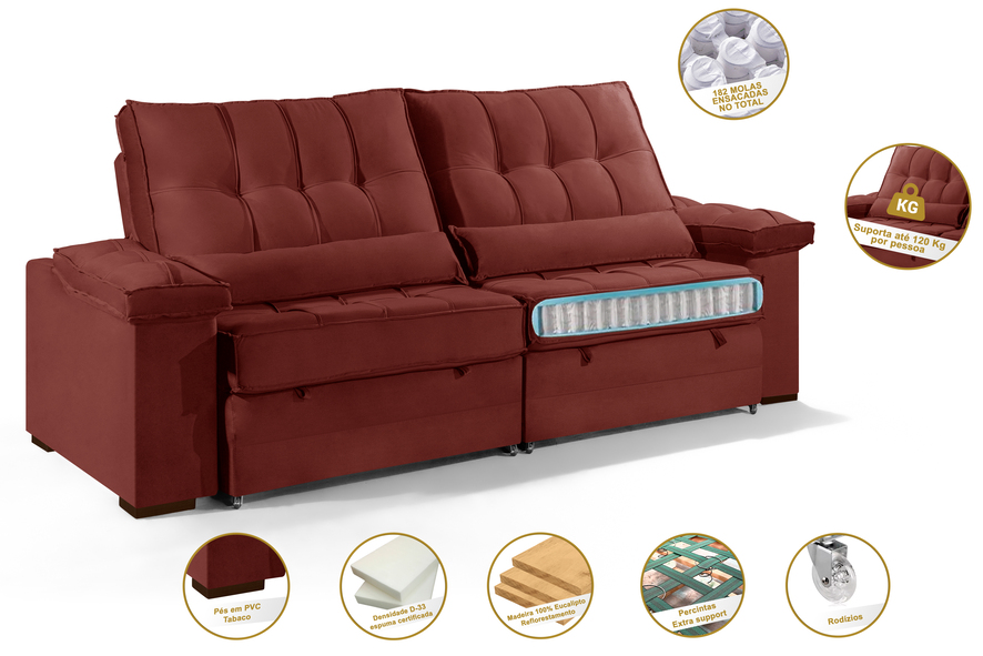 - Assento retrátil em espuma D-33, sustentação com cintas elásticas de alta resistência, molas ensacadas, corrediças metálicas tubulares com pillow de 20 cm.