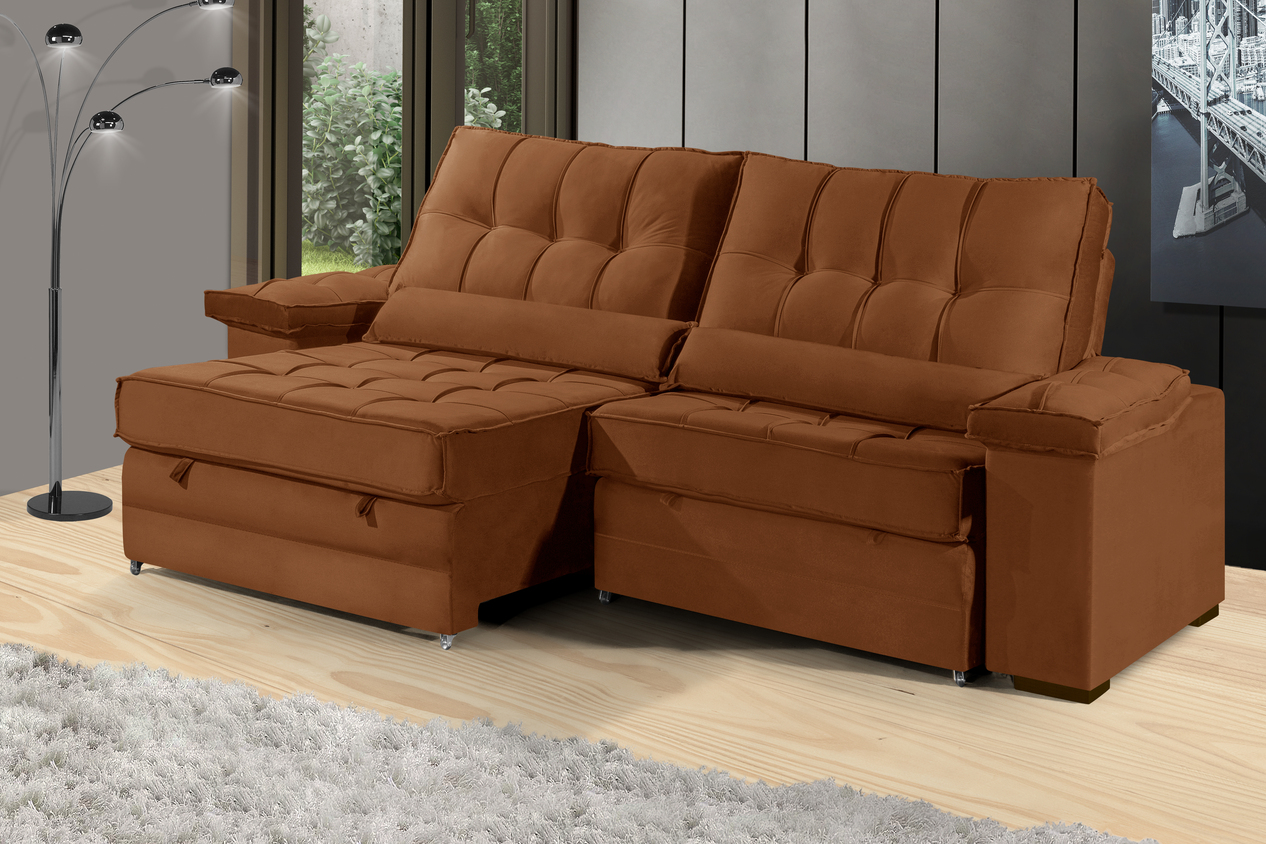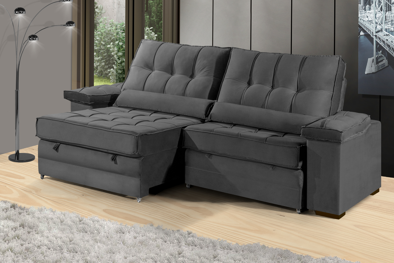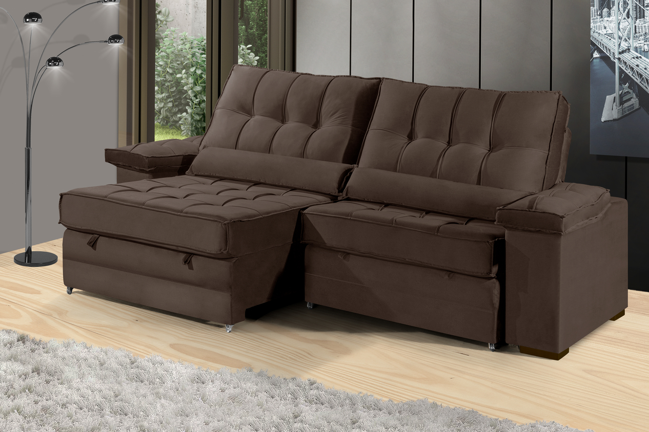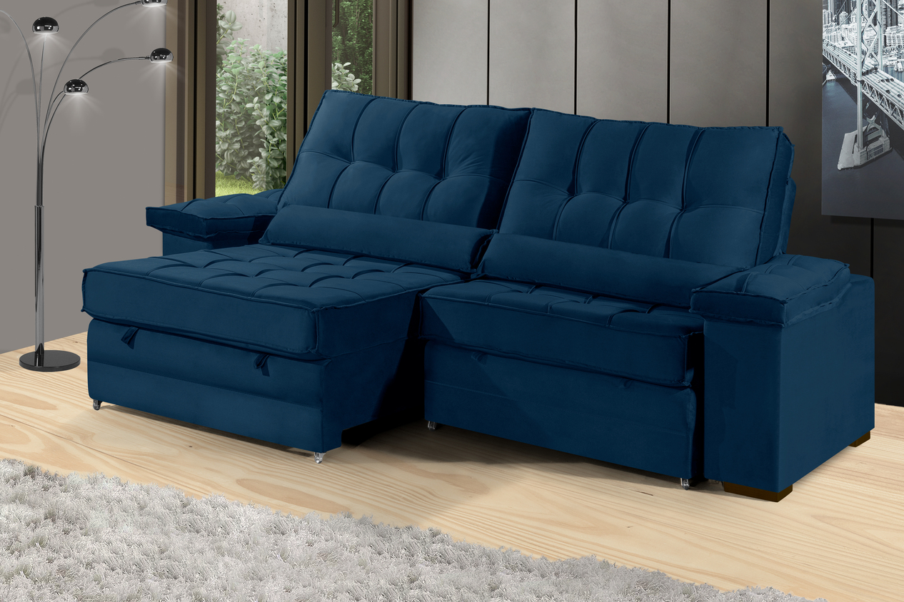 - Assento retrátil em espuma D-33, sustentação com cintas elásticas de alta resistência, molas ensacadas, corrediças metálicas tubulares com pillow de 20 cm.